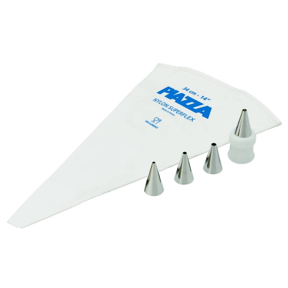 Set per alta decorazione. Composto da: 4 bocchette foro tondo, portabocchette, saccapoche. Material: acciaio inox. Misura foro: 3,1 mm, 3,3 mm, 3,5 mm, 3,7 mm. Misura saccapoche: 34 cm.