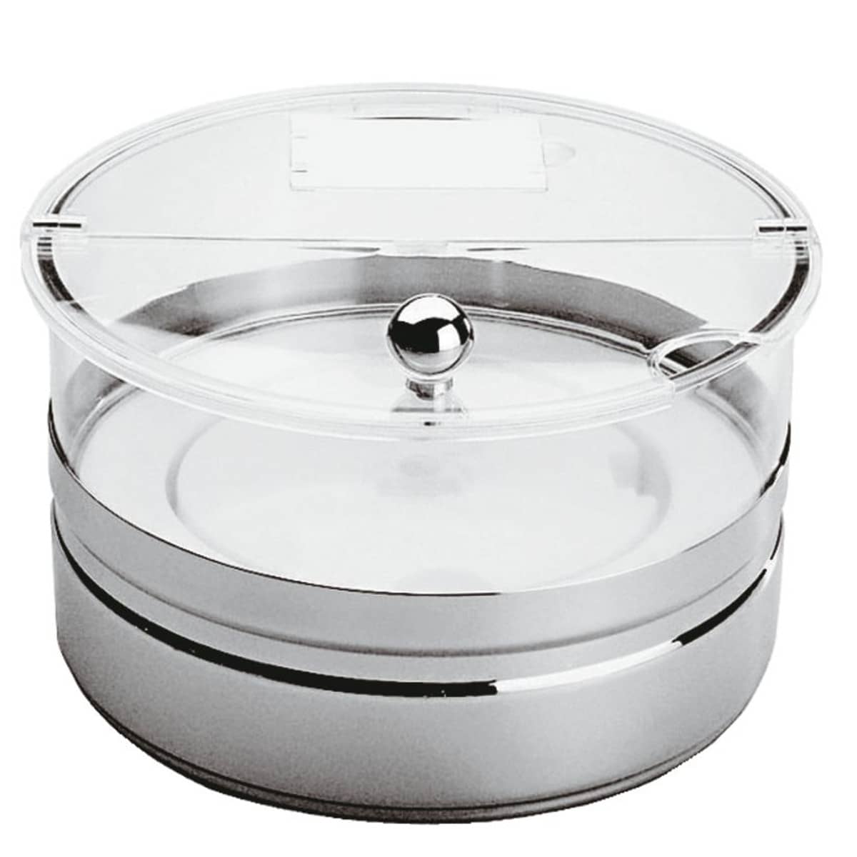Ciotola refrigerata. Valorizza la frutta tagliata. Leggera e resistente. Materiale: acciaio inox a specchio, acrilico. Misure: d. 22 cm – h. 14 cm – 2,5 Lt. d. 22 cm – h. 18 cm – 4 Lt.